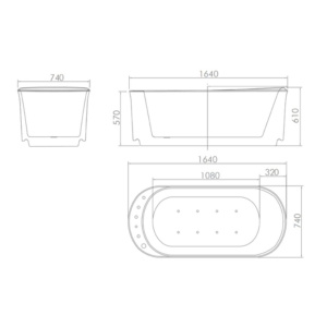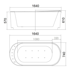 ขนาด: 1640 x 740 x 610 mm.